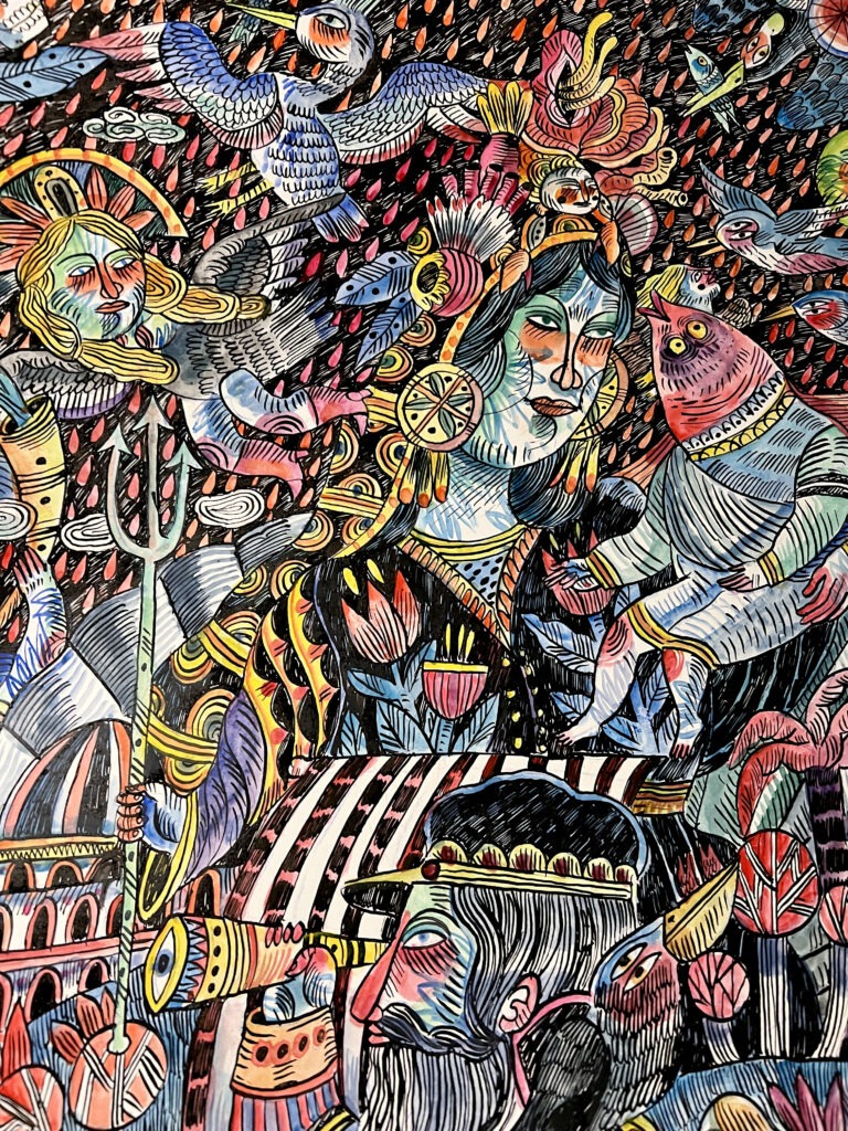 À travers sa peinture qualifiée de visionnaire, nourrie de symboles, de gestes rituels et de figures intemporelles, Mina Mond sonde l’éternel rapport de l’homme au divin comme voie de connaissance et de transformation intérieure.