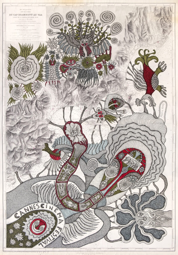Evelyne Postic est une artiste autodidacte française, son dessin foisonnant nous présente des formes hybrides mêlant humain, animal et végétal pour explorer l’adaptation des êtres vivants à leur environnement et l’évolution des espèces.